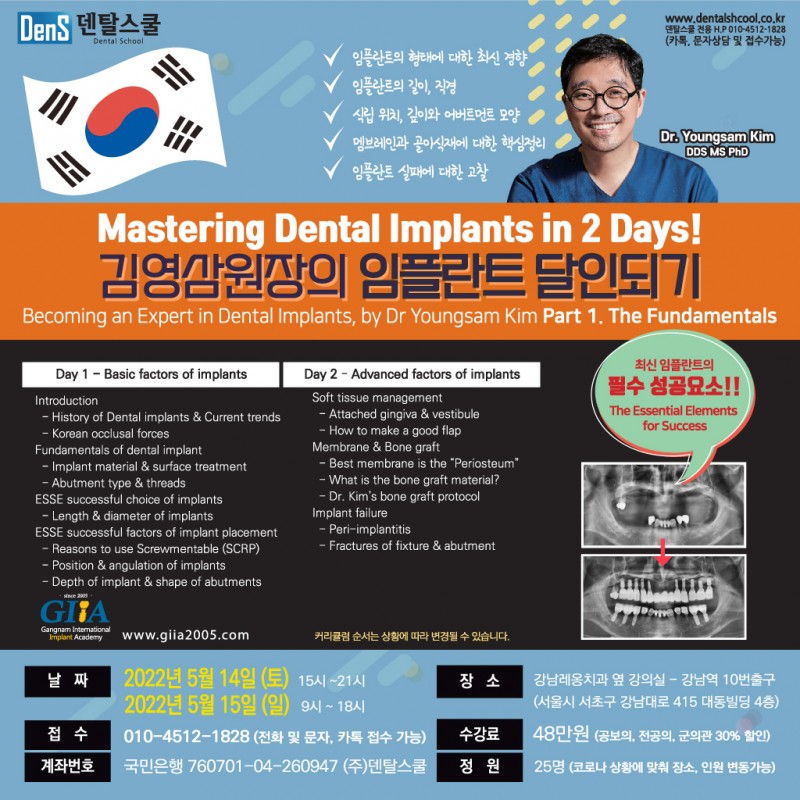 [김영삼원장 세미나] 2024 MASTERING DENTAL IMPLANTS SEMINAR IN VIRGINIA USA (APR 20th - 21st) Dr. Young Sam Kim's lecture 'Mastering Dental Implants' will be held in Virginia, USA.작성일 2024-03-13 회 1032