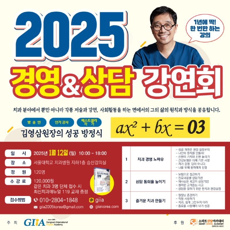 국내 일정변경 - 추후 공지 예정) 2025 김영삼 원장의 경영&상담 강연회 (1월 12일)