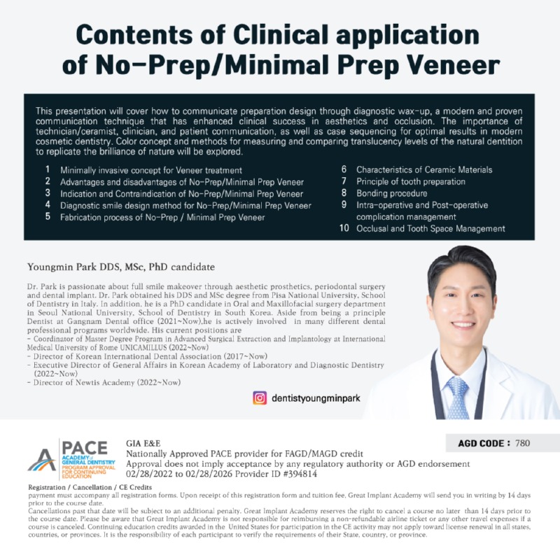 2024 CLINICAL APPLICATION OF NO-PREP/MINIMAL PREP VENEER IN NEW YORK ; K-DENTAL WORLD CONFERENCE > 박영민원장 세미나